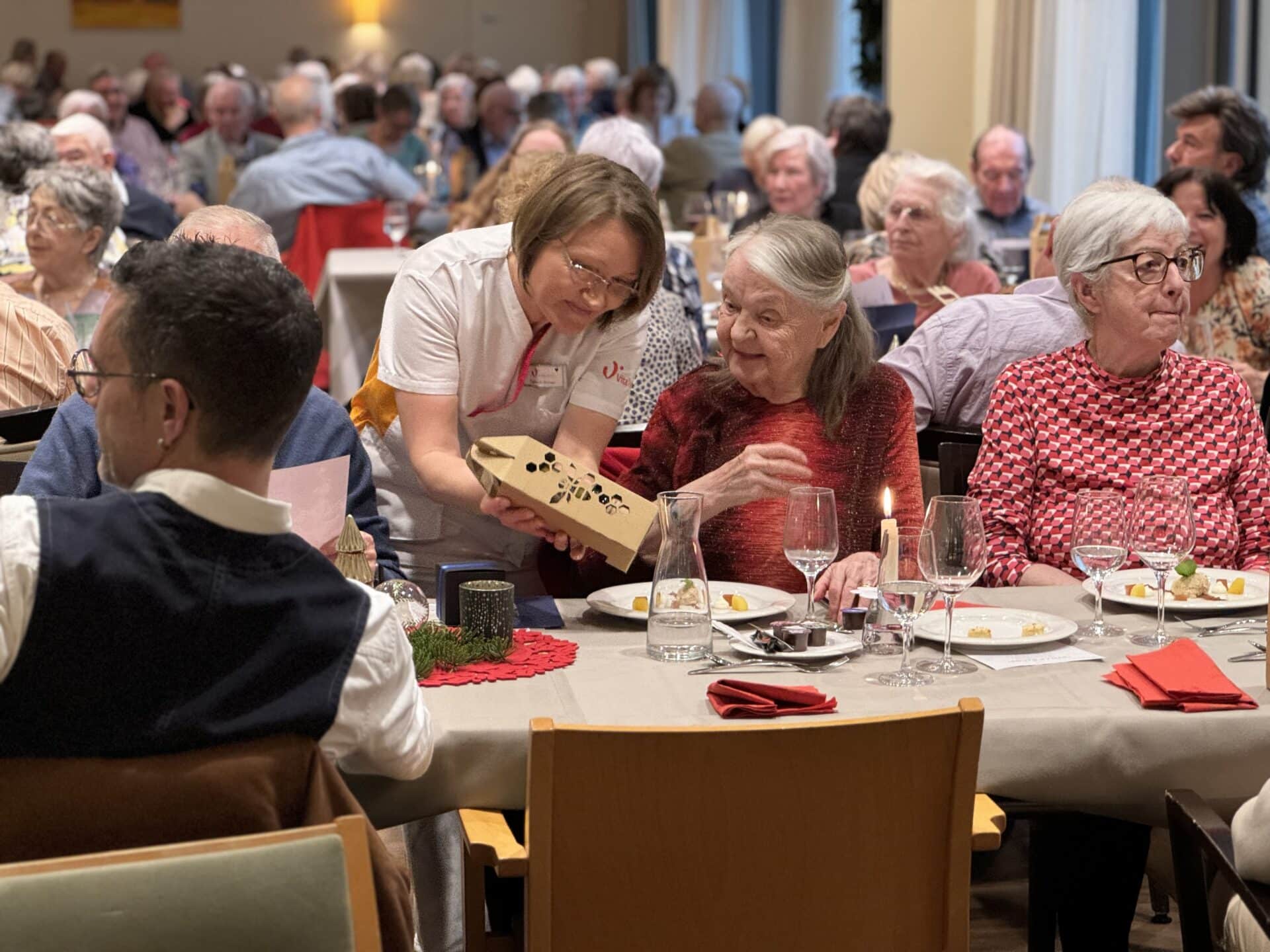 Bewohner/-innen, Mitarbeitende und Angehörige kamen zusammen, um bei köstlichem Essen die besinnliche Zeit zu geniessen.